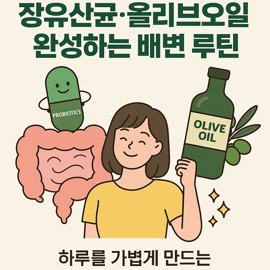 그때부터 매일 아침 유산균 + 올리브오일 캡슐을 함께 복용하며
